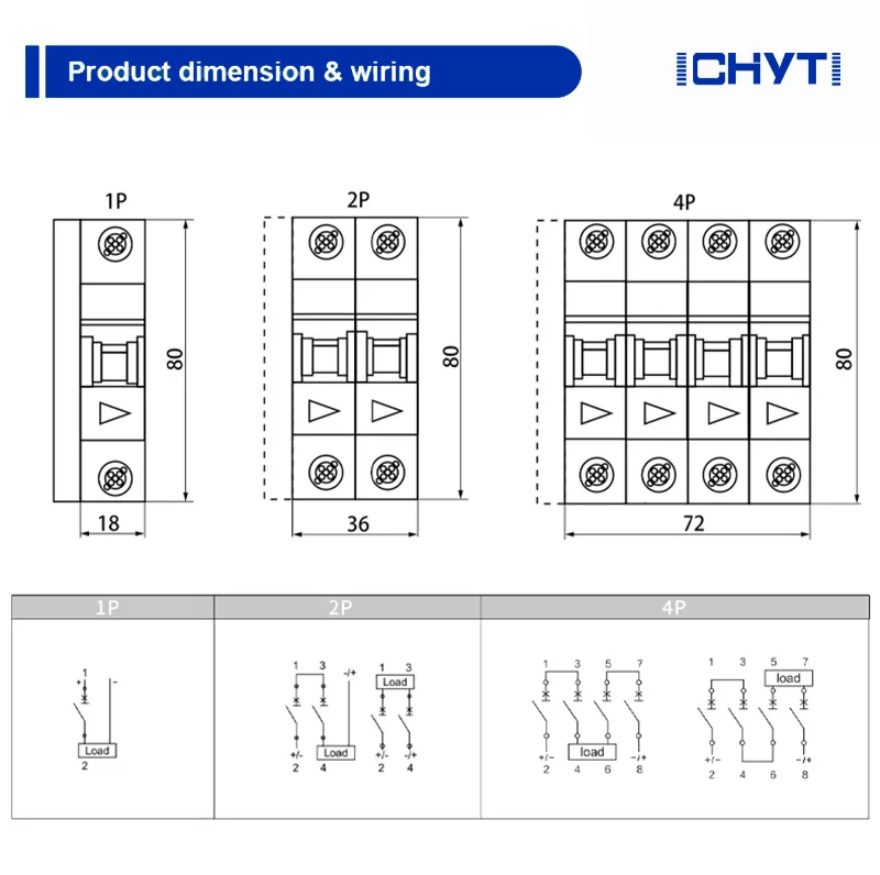 A CHYT egy jó hírű kínai gyártó, kész megszakítót kínálni napelemekhez. Megígérjük, hogy a legjobb értékesítés utáni támogatást és gyors szállítást biztosítjuk Önnek. Névleges árama nem haladhatja meg a 63A-t.