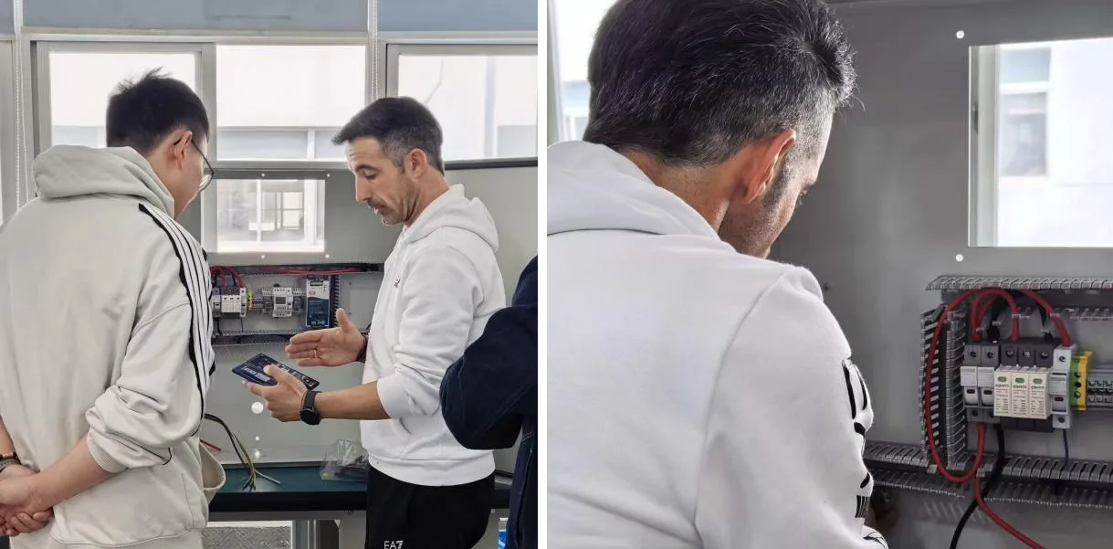Nemzetközi partnerünk azért van itt, hogy megvizsgálja PV kombinálódobozainkat, és csapatunkkal együttműködve gondoskodik arról, hogy minden termék megfeleljen a szigorú szabványoknak. Személyes együttműködés, aprólékos minőségellenőrzés és közös elkötelezettség a tiszta energia iránt – így építünk tartós globális partnerségeket.